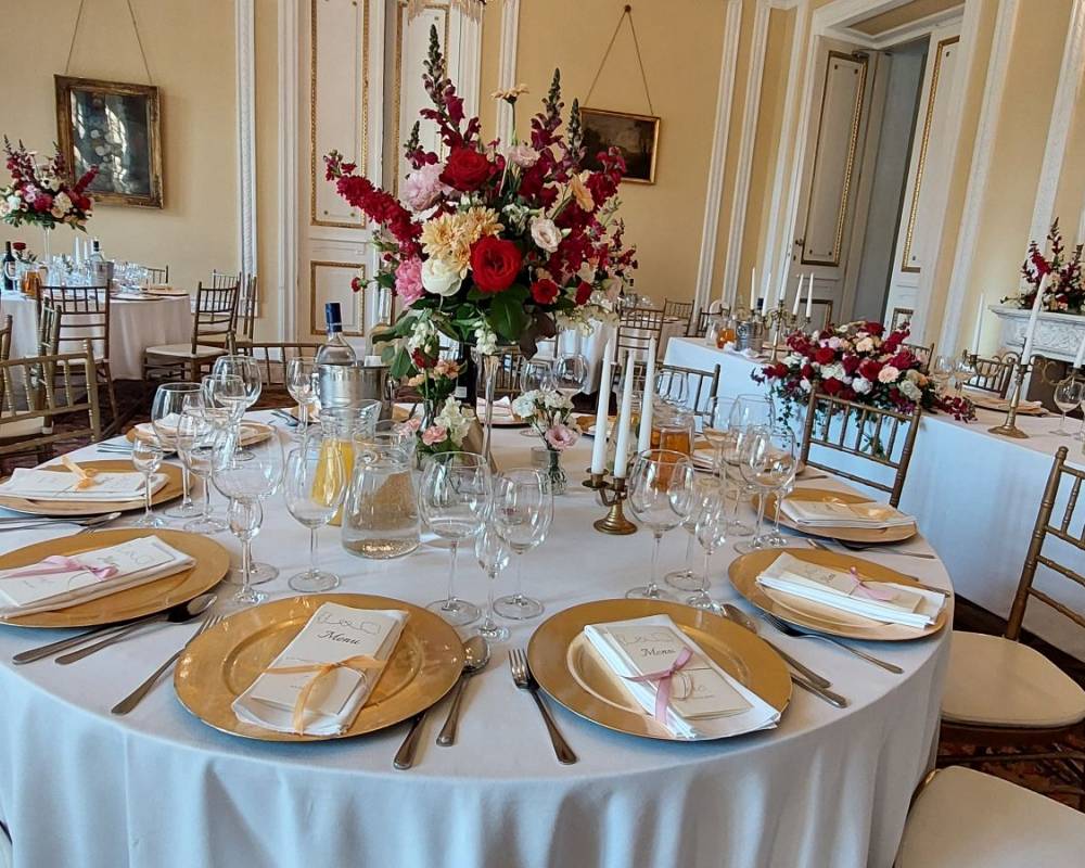 Powierzchnia Sali Kominkowej: 90 m2, o wymiarach 11 m x 8 m.